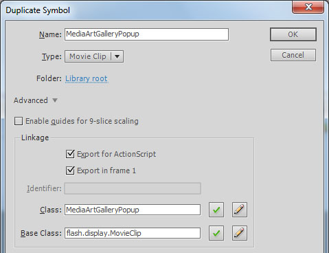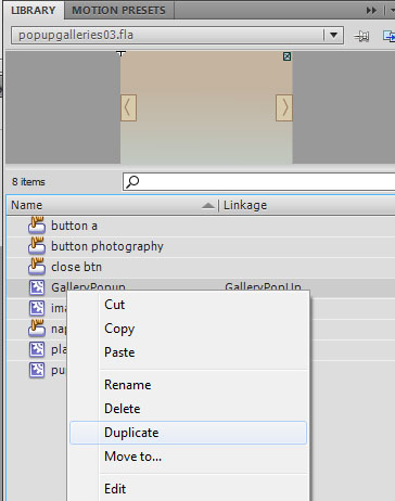 6f) make a new class file: duplicate GalleryPopUp.as and rename it (MediaArtGalleryPopup in the example)