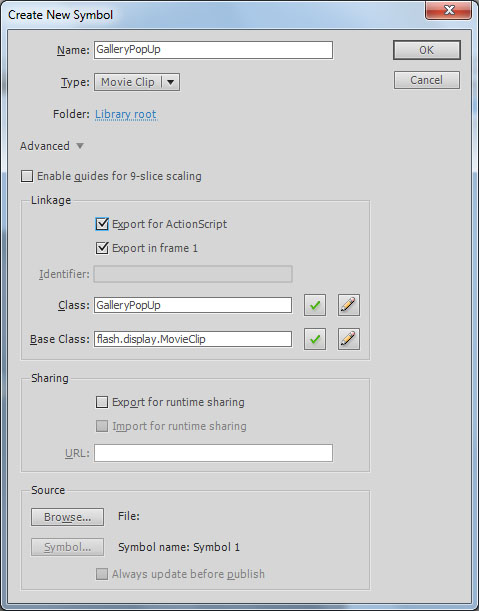 5) create class file for GalleryPopUp (filename GalleryPopUp.as):