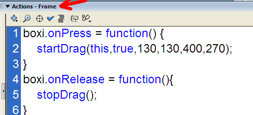 2. kirjoita frame:lle seuraava koodi: (boxi on liikuteltavan