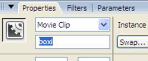 2. valitse movie clip ja anna instanssille nimi: "boxi".